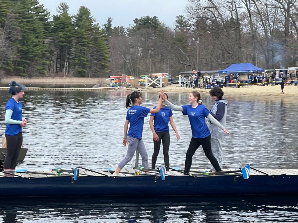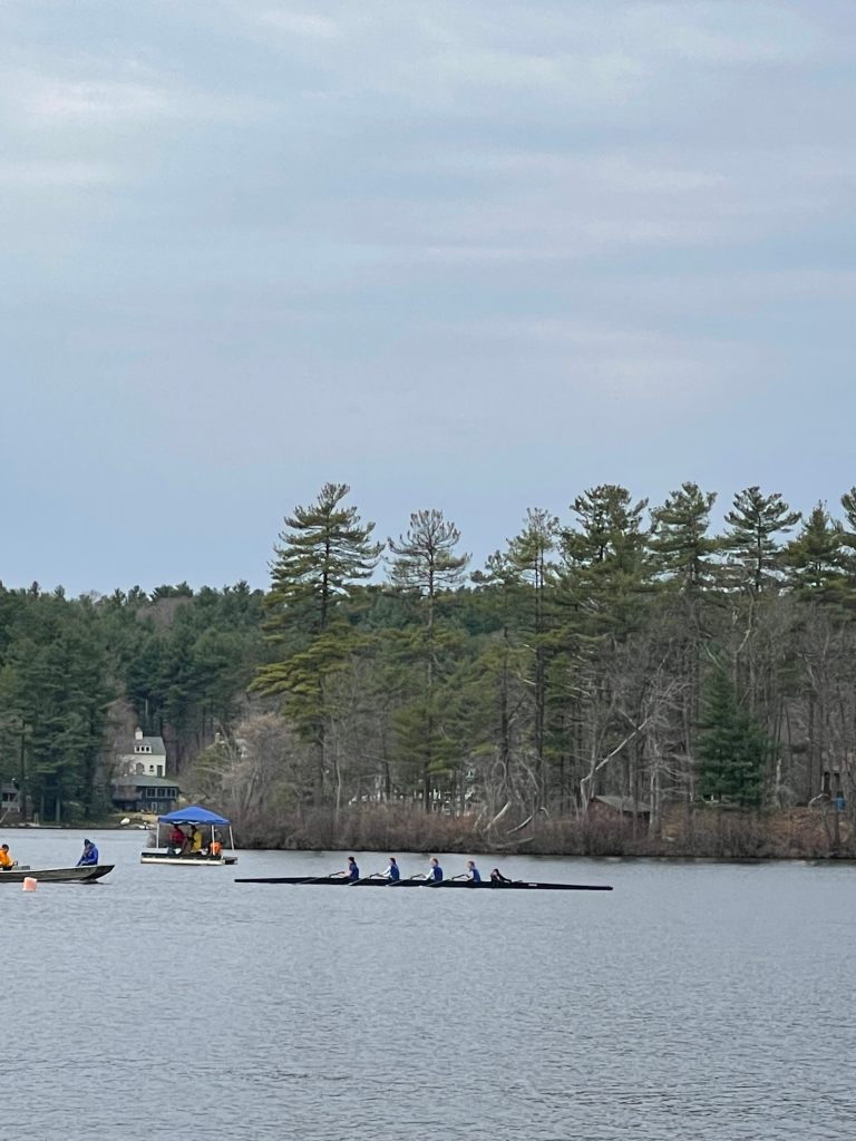 After 4-week indoor training, Emily started the outdoor practice in early April. At the end of April, the Regatta is very exciting for all the new rowers. I learned that: every child who starts rowing would likely be a newcomer because most of the participants attend rowing from middle school, high school, and even college. It is unlikely with tennis, and many kids start when they are young.